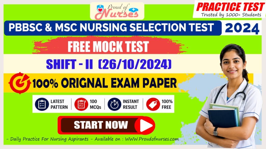 Start the MP POST BSc & MSc Nursing Combined Entrance Exam 2024 (26 Oct Shift 2) practice test and attempt all questions carefully. Select the correct option for each question and complete the test before submitting. This mock test simulates the actual exam pattern and helps you evaluate your preparation level.
